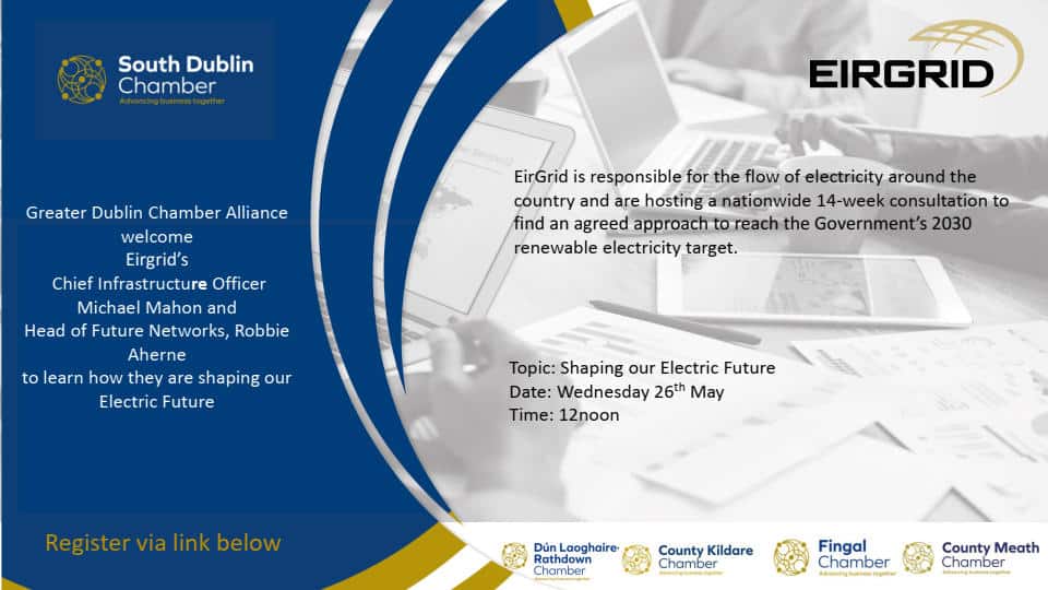 This webinar is run in partnership with County Kildare, Dún Laoghaire Rathdown and Fingal Dublin Chambers